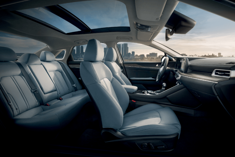 The 2023 Kia K5 cabin doesn't disappoint, thanks to the premium materials and supportive seats. With the base trim, standard comfort features include dual-zone automatic climate control, manually adjustable front seats, and cloth upholstery. This model also features a six-speaker audio system with wireless Apple CarPlay/Android Auto smartphone integration and an 8-inch touch screen. The LXS adds a few interior enhancements, such as rear-seat USB ports and a rear center armrest, while the GT-Line tacks on a power driver's seat, simulated leather and cloth upholstery, a larger 10.25-inch touch screen, and wireless device charging. Choose the EX to get heated and ventilated front seats, full simulated leather upholstery, and rear-seat climate vents. This model is also available with a premium 12-speaker Bose audio system, driver's seat memory settings, and a heated steering wheel. The GT trim comes with sport front seats and several of the enhancements offered on the EX.