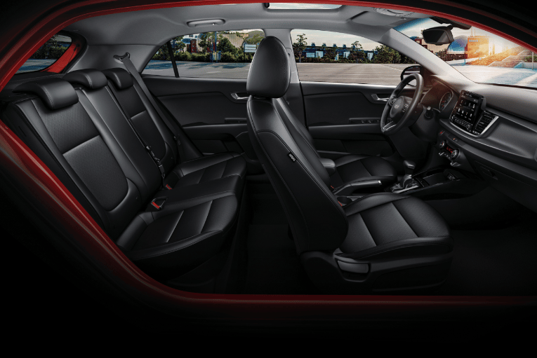 The cabin of the Kia Rio comes with seating for up to five. An 8-inch touch screen sits on the dashboard, which is compatible with Bluetooth connectivity, a USB port, a six-speaker stereo system, and wireless Android Auto and Apple CarPlay. Users can sync their smartphone to the Rio using these features, which allows for hands-free phone calling, text messaging, music streaming, and so much more.