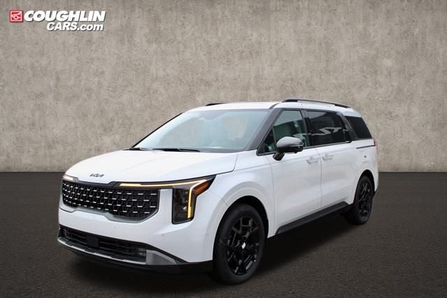 Snow White Pearl 2025 Kia Carnival Hybrid SX FWD 6-Speed Automatic 1.6L I4 DGI Hybrid Turbocharged DOHC 16V LEV3-SULEV30 2025 Kia Carnival Hybrid SX in Snow White Pearl with Artificial Leather, 1.6L I4 DGI Hybrid Turbocharged DOHC 16V LEV3-SULEV30, 3rd row seats: split-bench, Apple CarPlay & Android Auto, Navigation system: AVN 5.0 Navigation System, Power 2nd-Row Moonroof, Power Liftgate, Power moonroof, SX Dark Edition Package, Wheels: 7.5J x 19 Alloy Dark Edition.