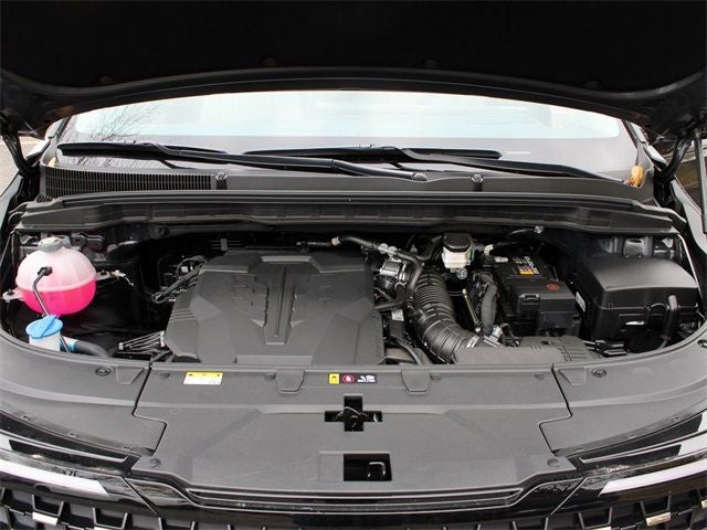 Equipped with Rear Seat Entertainment Package (Dual Screen Rear Seat Entertainment System), SX Prestige Seat Package (2nd Row Laminated Windows, Ambient Lighting, Heated/Ventilated 2nd Row Power VIP Lounge Seats, and High Glossy Interior Trim), 12 Speakers, 3.51 Axle Ratio, 3rd row seats: split-bench, 4-Wheel Disc Brakes, ABS brakes, Air Conditioning, Alloy wheels, AM/FM radio: SiriusXM, Apple CarPlay & Android Auto, Auto High-beam Headlights, Auto-dimming Rear-View mirror, Automatic temperature control, Brake assist, Bumpers: body-color, Compass, Delay-off headlights, Driver door bin, Driver vanity mirror, Dual front impact airbags, Dual front side impact airbags, Electronic Stability Control, Emergency communication system, Exterior Parking Camera Rear, Four wheel independent suspension, Front anti-roll bar, Front Bucket Seats, Front Center Armrest, Front dual zone A/C, Front fog lights, Front reading lights, Fully automatic headlights, Garage door transmitter: HomeLink, Heads-Up Display, Heated & Ventilated Front Bucket Seats, Heated door mirrors, Heated front seats, Heated steering wheel, Illuminated entry, Knee airbag, Leather Shift Knob, Leather steering wheel, Low tire pressure warning, Memory seat, Navigation system: AVN 5.0 Navigation System, Occupant sensing airbag, Outside temperature display, Overhead airbag, Overhead console, Panic alarm, Passenger door bin, Passenger vanity mirror, Power 2nd-Row Moonroof, Power door mirrors, Power driver seat, Power Liftgate, Power moonroof, Power passenger seat, Power steering, Power windows, Pure Leather Seat Trim, Radio: AM/FM/HD Audio System, Rain sensing wipers, Rear air conditioning, Rear anti-roll bar, Rear reading lights, Rear window defroster, Rear window wiper, Reclining 3rd row seat, Remote keyless entry, Security system, Speed control, Speed-sensing steering, Split folding rear seat, Spoiler, Steering wheel mounted audio controls, Tachometer, Telescoping steering wheel, Tilt steering wheel, Traction control, Trailer Prewire Harness, Trip computer, Turn signal indicator mirrors, Variably intermittent wipers, Ventilated front seats, and Wheels: 7.5J x 19 Alloy Dark Edition.