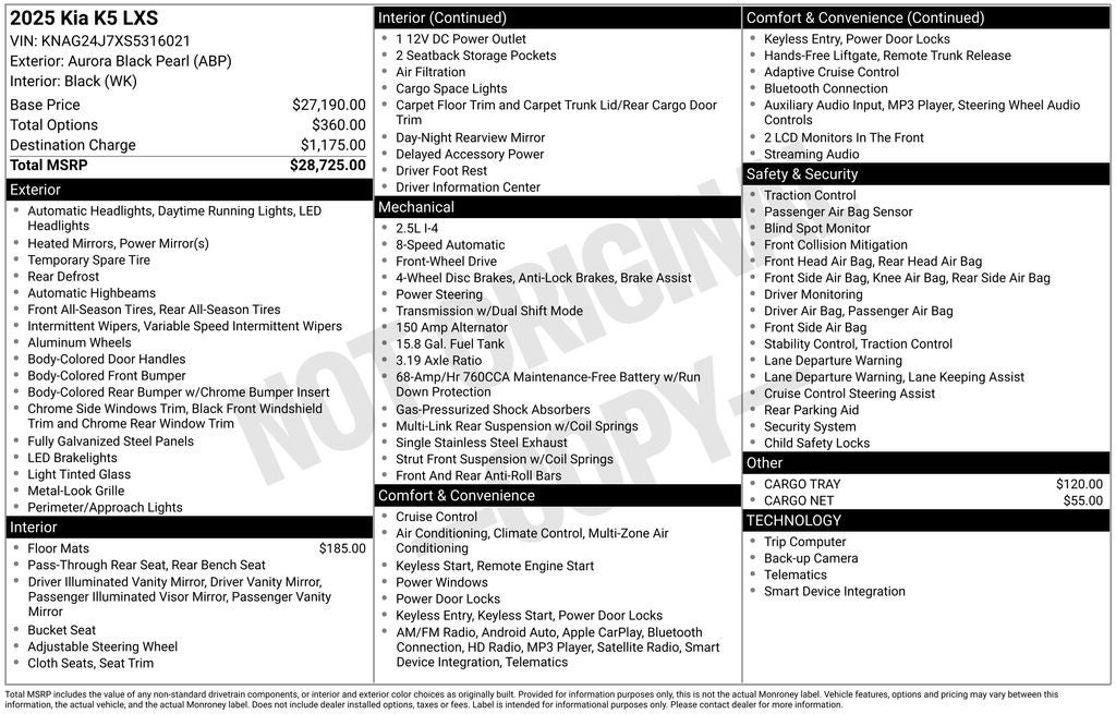 With its sleek design, impressive features, and the confidence of Kia's Certified Pre-Owned program, this 2025 K5 LXS is an exceptional value. We invite you to experience the exceptional quality and craftsmanship of this sedan for yourself. Schedule a test drive today and discover why the Kia K5 should be your next vehicle.