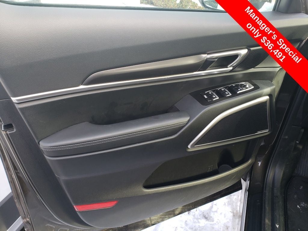 Equipped with 3rd row seats: split-bench, 4-Wheel Disc Brakes, 6 Speakers, ABS brakes, Air Conditioning, Alloy wheels, AM/FM radio: SiriusXM, Apple CarPlay & Android Auto, Auto High-beam Headlights, Automatic temperature control, Brake assist, Bumpers: body-color, Carpeted Floor Mats, Delay-off headlights, Driver door bin, Driver vanity mirror, Dual front impact airbags, Dual front side impact airbags, Electronic Stability Control, Emergency communication system: 911 Connect, Exterior Parking Camera Rear, Four wheel independent suspension, Front anti-roll bar, Front Bucket Seats, Front Center Armrest, Front dual zone A/C, Front reading lights, Fully automatic headlights, Heated door mirrors, Heated Front Bucket Seats, Heated front seats, Illuminated entry, Knee airbag, Leather Shift Knob, Leather steering wheel, Low tire pressure warning, Mud Guard Kit, Navigation System, Occupant sensing airbag, Outside temperature display, Overhead airbag, Overhead console, Panic alarm, Passenger door bin, Passenger vanity mirror, Power door mirrors, Power driver seat, Power Liftgate, Power moonroof, Power steering, Power windows, Radio data system, Radio: AM/FM Display Audio System, Rear air conditioning, Rear anti-roll bar, Rear audio controls, Rear reading lights, Rear side impact airbag, Rear window defroster, Rear window wiper, Reclining 3rd row seat, Remote keyless entry, Security system, Speed control, Speed-sensing steering, Split folding rear seat, Spoiler, Steering wheel mounted audio controls, SynTex Synthetic Leather Seat Trim, Tachometer, Telescoping steering wheel, Tilt steering wheel, Traction control, Trip computer, Turn signal indicator mirrors, Variably intermittent wipers, and Wheels: 20 x 7.5 Black Finish.