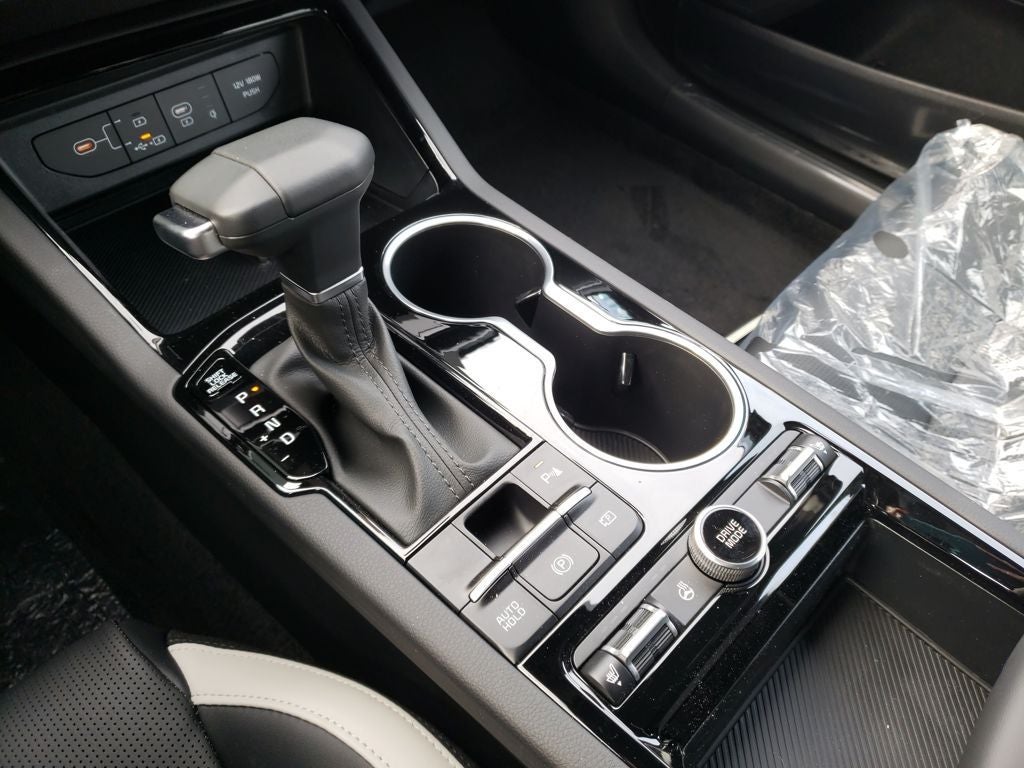 Equipped with 4-Wheel Disc Brakes, 6 Speakers, ABS brakes, Air Conditioning, Alloy wheels, AM/FM radio: SiriusXM, Auto High-beam Headlights, Automatic temperature control, Brake assist, Bumpers: body-color, Carpeted Floor Mats, Delay-off headlights, Driver door bin, Driver vanity mirror, Dual front impact airbags, Dual front side impact airbags, Electronic Stability Control, Emergency communication system: Kia Connect (includes 1 year free trial), Four wheel independent suspension, Front anti-roll bar, Front Bucket Seats, Front Center Armrest, Front dual zone A/C, Front fog lights, Front reading lights, Fully automatic headlights, Heated door mirrors, Heated Front Bucket Seats, Heated front seats, Heated steering wheel, Illuminated entry, Knee airbag, Leather Shift Knob, Leather steering wheel, Low tire pressure warning, Navigation System, Occupant sensing airbag, Outside temperature display, Overhead airbag, Overhead console, Panic alarm, Passenger door bin, Passenger vanity mirror, Power door mirrors, Power driver seat, Power steering, Power windows, Radio data system, Radio: AM/FM Audio System, Rear anti-roll bar, Rear seat center armrest, Rear side impact airbag, Rear window defroster, Remote keyless entry, Security system, Speed control, Speed-sensing steering, Split folding rear seat, Sport steering wheel, Steering wheel mounted audio controls, Tachometer, Telescoping steering wheel, Tilt steering wheel, Traction control, Trip computer, Turn signal indicator mirrors, Variably intermittent wipers, and Wheels: 18 x 7.5J Gloss Black Machined Finish Alloy.