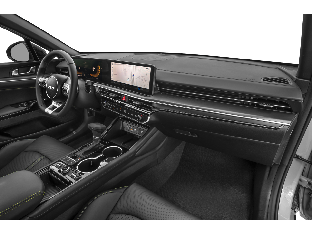 Equipped with 4-Wheel Disc Brakes, 6 Speakers, ABS brakes, Air Conditioning, Alloy wheels, AM/FM radio: SiriusXM, Auto High-beam Headlights, Automatic temperature control, Brake assist, Bumpers: body-color, Carpeted Floor Mats, Delay-off headlights, Driver door bin, Driver vanity mirror, Dual front impact airbags, Dual front side impact airbags, Electronic Stability Control, Emergency communication system: Kia Connect (includes 1 year free trial), Four wheel independent suspension, Front anti-roll bar, Front Bucket Seats, Front Center Armrest, Front dual zone A/C, Front fog lights, Front reading lights, Fully automatic headlights, Heated door mirrors, Heated front seats, Heated Sport Bucket Seats, Illuminated entry, Knee airbag, Leather Shift Knob, Leather steering wheel, Low tire pressure warning, Navigation System, Occupant sensing airbag, Outside temperature display, Overhead airbag, Overhead console, Panic alarm, Passenger door bin, Passenger vanity mirror, Power door mirrors, Power driver seat, Power moonroof, Power steering, Power windows, Radio data system, Radio: AM/FM Audio System, Rear anti-roll bar, Rear reading lights, Rear seat center armrest, Rear side impact airbag, Rear window defroster, Remote keyless entry, Security system, Speed control, Speed-sensing steering, Split folding rear seat, Sport steering wheel, Steering wheel mounted audio controls, SynTex Seat Trim, Tachometer, Telescoping steering wheel, Tilt steering wheel, Traction control, Trip computer, Turn signal indicator mirrors, Variably intermittent wipers, and Wheels: 19 x 8.0J Gloss Black Machined Finish Alloy. Must Finance with Kia Finance America to be eligible for KFA Bonus Cash. Offer not stackable with other offers from Kia.
