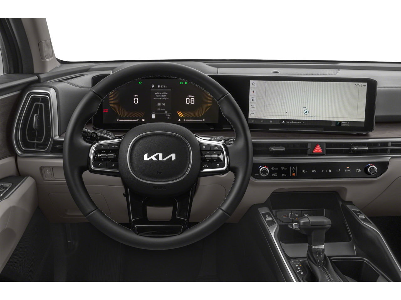 Equipped with AWD, 3rd row seats: split-bench, 4-Wheel Disc Brakes, ABS brakes, Air Conditioning, All Weather Floor Mats, Alloy wheels, AM/FM radio: SiriusXM, Apple CarPlay & Android Auto, Auto High-beam Headlights, Auto-dimming Rear-View mirror, Automatic temperature control, Brake assist, Bumpers: body-color, Delay-off headlights, Driver door bin, Driver vanity mirror, Dual front impact airbags, Dual front side impact airbags, Electronic Stability Control, Emergency communication system: 911 Connect, Exterior Parking Camera Rear, Four wheel independent suspension, Front anti-roll bar, Front Bucket Seats, Front Center Armrest, Front dual zone A/C, Front fog lights, Front reading lights, Fully automatic headlights, Heated door mirrors, Heated Front Bucket Seats, Heated front seats, Illuminated entry, Knee airbag, Leather Shift Knob, Leather steering wheel, Low tire pressure warning, Navigation System, Occupant sensing airbag, Outside temperature display, Overhead airbag, Overhead console, Panic alarm, Passenger door bin, Passenger vanity mirror, Power door mirrors, Power driver seat, Power Liftgate, Power passenger seat, Power steering, Power windows, Radio data system, Radio: AM/FM Standard Sound System, Rear anti-roll bar, Rear reading lights, Rear side impact airbag, Rear window defroster, Rear window wiper, Remote keyless entry, Security system, Speed control, Speed-sensing steering, Split folding rear seat, Spoiler, Steering wheel mounted audio controls, SynTex Artificial Leather Seat Trim, Tachometer, Telescoping steering wheel, Tilt steering wheel, Traction control, Trip computer, Turn signal indicator mirrors, and Variably intermittent wipers. Must Finance with Kia Finance America to be eligible for KFA Bonus Cash. Offer not stackable with other offers from Kia.