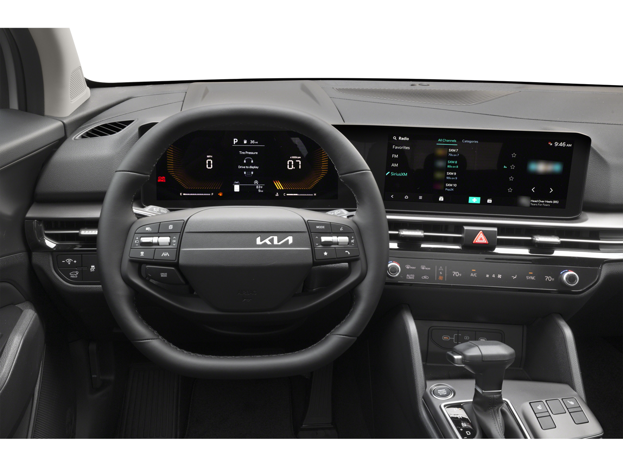 Equipped with 18 x 7.5J Alloy Wheels, 4-Wheel Disc Brakes, 6 Speakers, ABS brakes, Air Conditioning, Alloy wheels, Auto Dimming Mirror with HomeLink, Auto High-beam Headlights, Automatic temperature control, Brake assist, Bumpers: body-color, Carpeted Floor Mats, Delay-off headlights, Driver door bin, Driver vanity mirror, Dual front impact airbags, Dual front side impact airbags, Electronic Stability Control, Emergency communication system: Kia Connect (includes 1 year free trial), Four wheel independent suspension, Front anti-roll bar, Front Bucket Seats, Front Center Armrest, Front dual zone A/C, Fully automatic headlights, Heated door mirrors, Heated Front Bucket Seats, Heated front seats, Illuminated entry, Leather Shift Knob, Leather steering wheel, Low tire pressure warning, Occupant sensing airbag, Outside temperature display, Overhead airbag, Overhead console, Panic alarm, Passenger door bin, Passenger vanity mirror, Power door mirrors, Power driver seat, Power Liftgate, Power steering, Power windows, Radio: AM/FM/HD Audio System, Rain sensing wipers, Rear anti-roll bar, Rear seat center armrest, Rear side impact airbag, Rear window defroster, Rear window wiper, Remote keyless entry, Security system, Speed control, Speed-sensing steering, Split folding rear seat, Spoiler, Steering wheel mounted audio controls, Syntex Leatherette Seat Trim, Tachometer, Telescoping steering wheel, Tilt steering wheel, Traction control, Trip computer, Turn signal indicator mirrors, and Variably intermittent wipers.