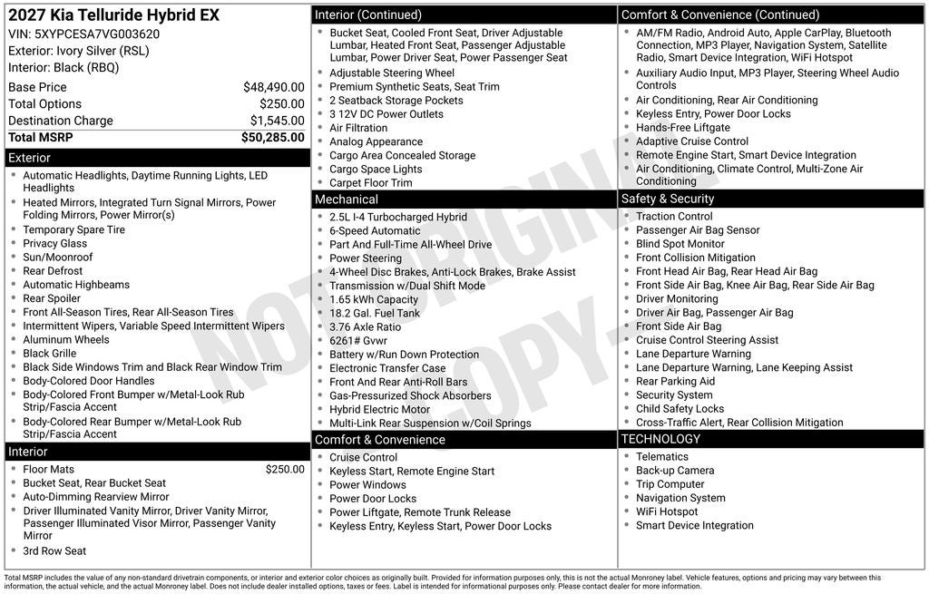 - Vehicle Name: Kia Telluride Hybrid