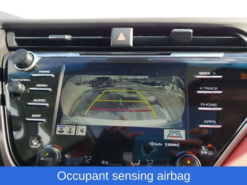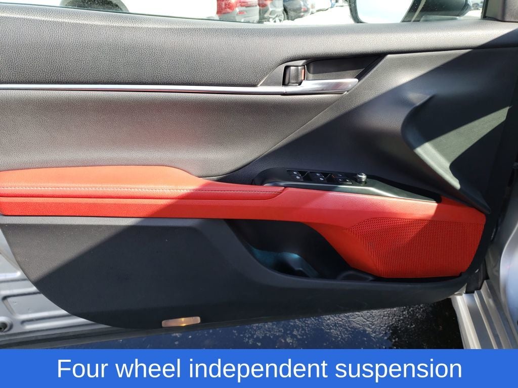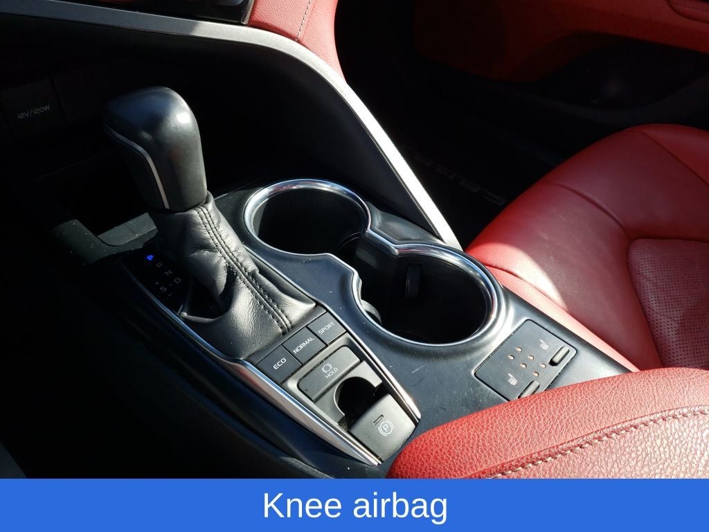 Celestial Silver Metallic 2019 Toyota Camry XSE FWD 8-Speed Automatic 2.5L I4 DOHC 16V Camry XSE, 4D Sedan, 2.5L I4 DOHC 16V, 8-Speed Automatic, FWD, Celestial Silver Metallic, Cockpit Red w/Perforated Leather Seat Trim, 4-Wheel Disc Brakes, 6 Speakers, ABS brakes, Air Conditioning, Alloy wheels, AM/FM radio: SiriusXM, Apple CarPlay, Auto High-beam Headlights, Auto-dimming Rear-View mirror, Automatic temperature control, Brake assist, Bumpers: body-color, CD player, Compass, Delay-off headlights, Driver door bin, Driver vanity mirror, Dual front impact airbags, Dual front side impact airbags, Electronic Stability Control, Emergency communication system: Safety Connect, Exterior Parking Camera Rear, Four wheel independent suspension, Front anti-roll bar, Front Bucket Seats, Front Center Armrest, Front dual zone A/C, Front reading lights, Fully automatic headlights, Garage door transmitter: HomeLink, Heated door mirrors, Heated front seats, Illuminated entry, Knee airbag, Leather Shift Knob, Low tire pressure warning, Multi-Stage Heated Front Bucket Seats, Occupant sensing airbag, Outside temperature display, Overhead airbag, Overhead console, Panic alarm, Passenger door bin, Passenger vanity mirror, Perforated Leather Seat Trim, Power door mirrors, Power driver seat, Power passenger seat, Power steering, Power windows, Radio data system, Radio: Entune 3.0 Audio Plus w/App Suite, Rear anti-roll bar, Rear reading lights, Rear seat center armrest, Rear side impact airbag, Rear window defroster, Remote keyless entry, Security system, Speed control, Speed-sensing steering, Split folding rear seat, Spoiler, Sport steering wheel, Steering wheel mounted audio controls, Tachometer, Telescoping steering wheel, Tilt steering wheel, Traction control, Trip computer, Turn signal indicator mirrors, Variably intermittent wipers, Wheels: 8.0J x 19 Black Machined-Finish Alloy.