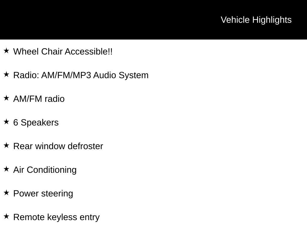 - Radio: AM/FM/MP3 Audio System
