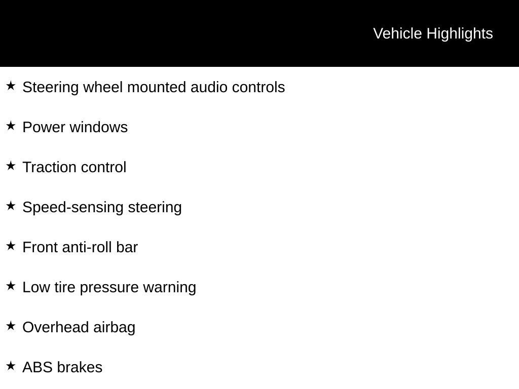 - Cruise Control w/Steering Wheel Controls