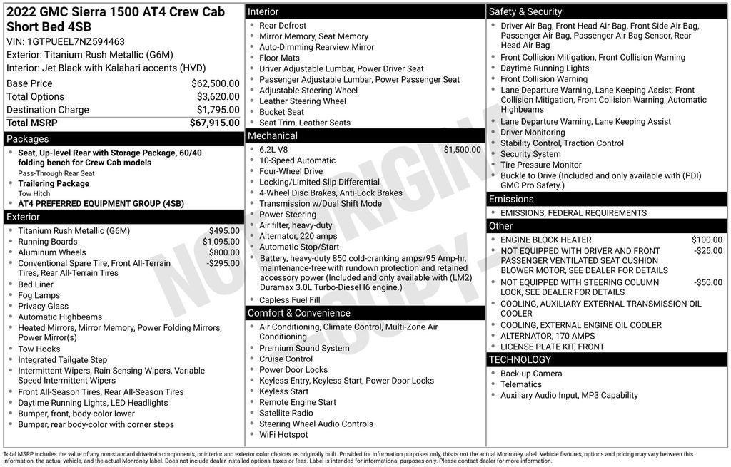 Come in or Contact us today to test drive this low mileage 2022 GMC Sierra At4!