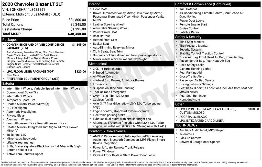 Midnight Blue Metallic 2020 Chevrolet Blazer LT Odometer is 9561 miles below market average! 21/27 City/Highway MPG