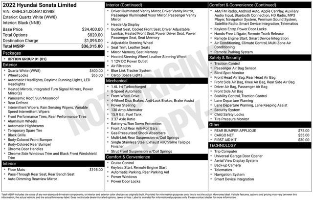 Quartz White 2022 Hyundai Sonata Limited Odometer is 2314 miles below market average! 27/37 City/Highway MPG