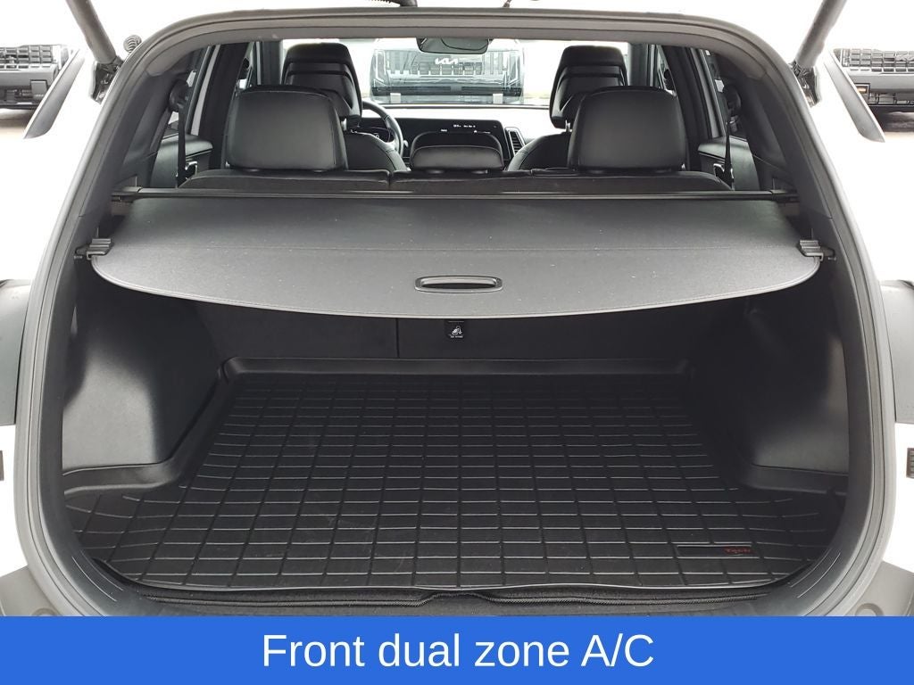 Glacial White Pearl 2024 Kia Sportage X-Line AWD 8-Speed Automatic I4 Sportage X-Line, 4D Sport Utility, I4, 8-Speed Automatic, AWD, Glacial White Pearl, Black w/Leatherette Seat Trim, 4-Wheel Disc Brakes, 6 Speakers, ABS brakes, Air Conditioning, Alloy wheels, AM/FM radio: SiriusXM, Apple CarPlay & Android Auto, Auto High-beam Headlights, Automatic temperature control, Axle Ratio: 3.648, Brake assist, Bumpers: body-color, Cargo Cover, Cargo Mat, Carpet Floor Mats X-Line, Compass, Cross Bars X-Line, Delay-off headlights, Driver door bin, Driver vanity mirror, Dual front impact airbags, Dual front side impact airbags, Electronic Stability Control, Emergency communication system, Four wheel independent suspension, Front anti-roll bar, Front Bucket Seats, Front Center Armrest, Front dual zone A/C, Fully automatic headlights, Heated door mirrors, Heated Front Bucket Seats, Heated front seats, Illuminated entry, Leather steering wheel, LED Interior Lighting, Low tire pressure warning, Navigation System, Occupant sensing airbag, Outside temperature display, Overhead airbag, Overhead console, Panic alarm, Panoramic Sunroof, Passenger door bin, Passenger vanity mirror, Power door mirrors, Power driver seat, Power steering, Power windows, Premium Leatherette Seat Trim, Radio: AM/FM/HD Audio System, Rain sensing wipers, Rear anti-roll bar, Rear seat center armrest, Rear side impact airbag, Rear window defroster, Rear window wiper, Remote keyless entry, Security system, Smart Power Liftgate, Speed control, Speed-sensing steering, Split folding rear seat, Spoiler, Steering wheel mounted audio controls, Tachometer, Telescoping steering wheel, Tilt steering wheel, Traction control, Trip computer, Turn signal indicator mirrors, Variably intermittent wipers, Wheels: 19 Gloss Black Alloy, X-Line Premium Package.